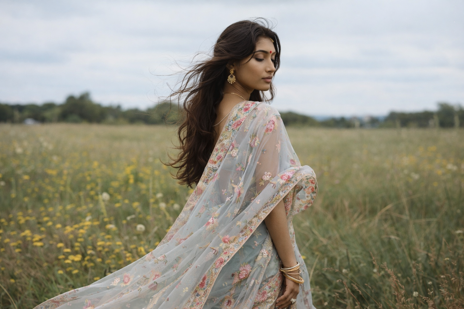 Black Designer Saree with Pastel Floral Detailing - Post 731