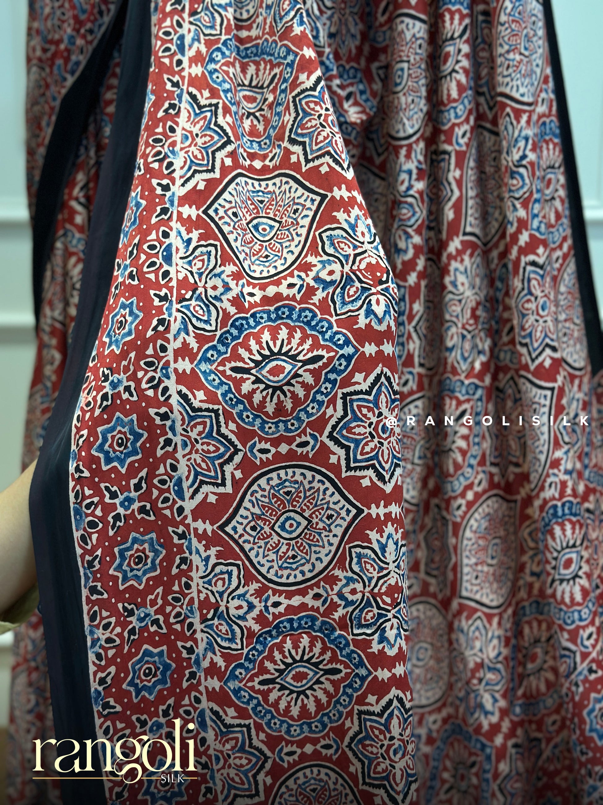 Ajrak Modal Silk Saree with Traditional Ajrak Print - Post 363