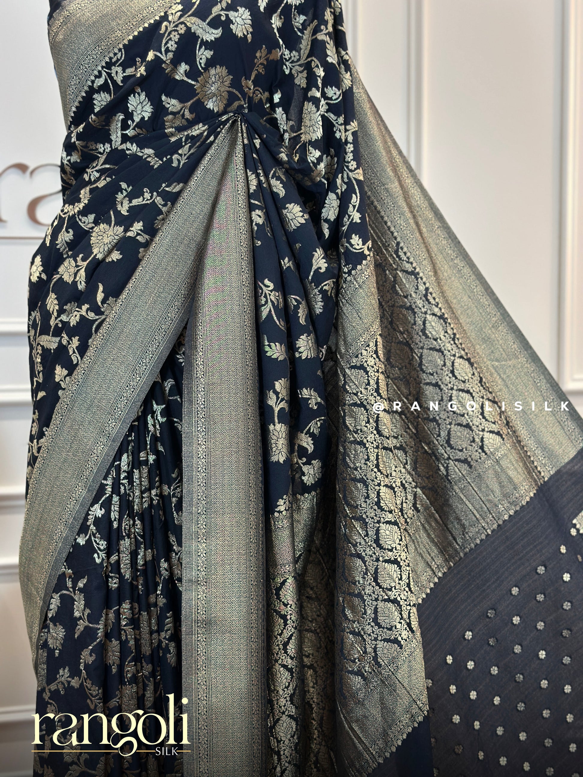 Banaras Saree with Rich Zari Borders & Intricate Floral Weaves - Post 453