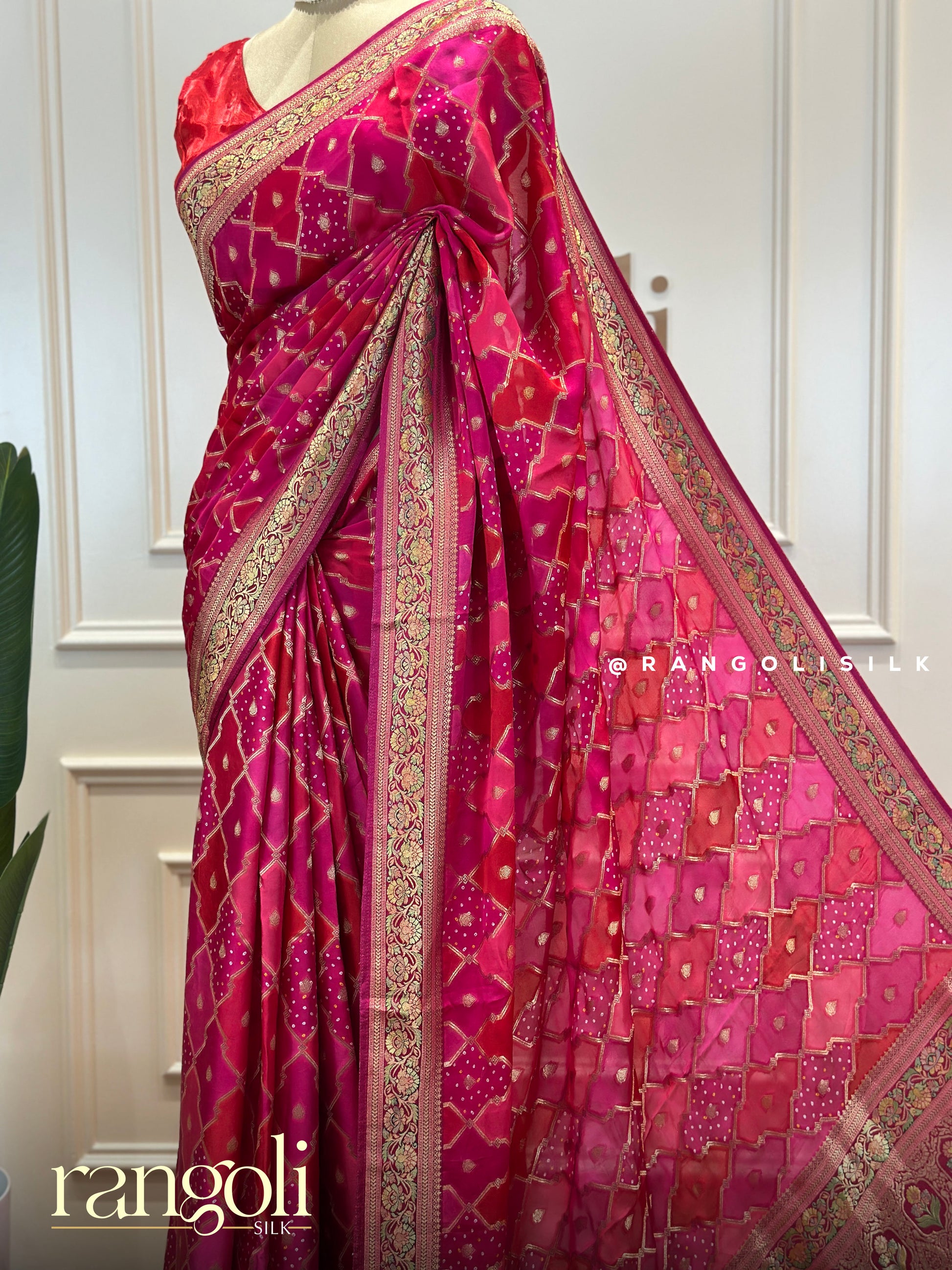 Banarasi Bandhani Saree with Intricate Golden Zari Borders - Post 449
