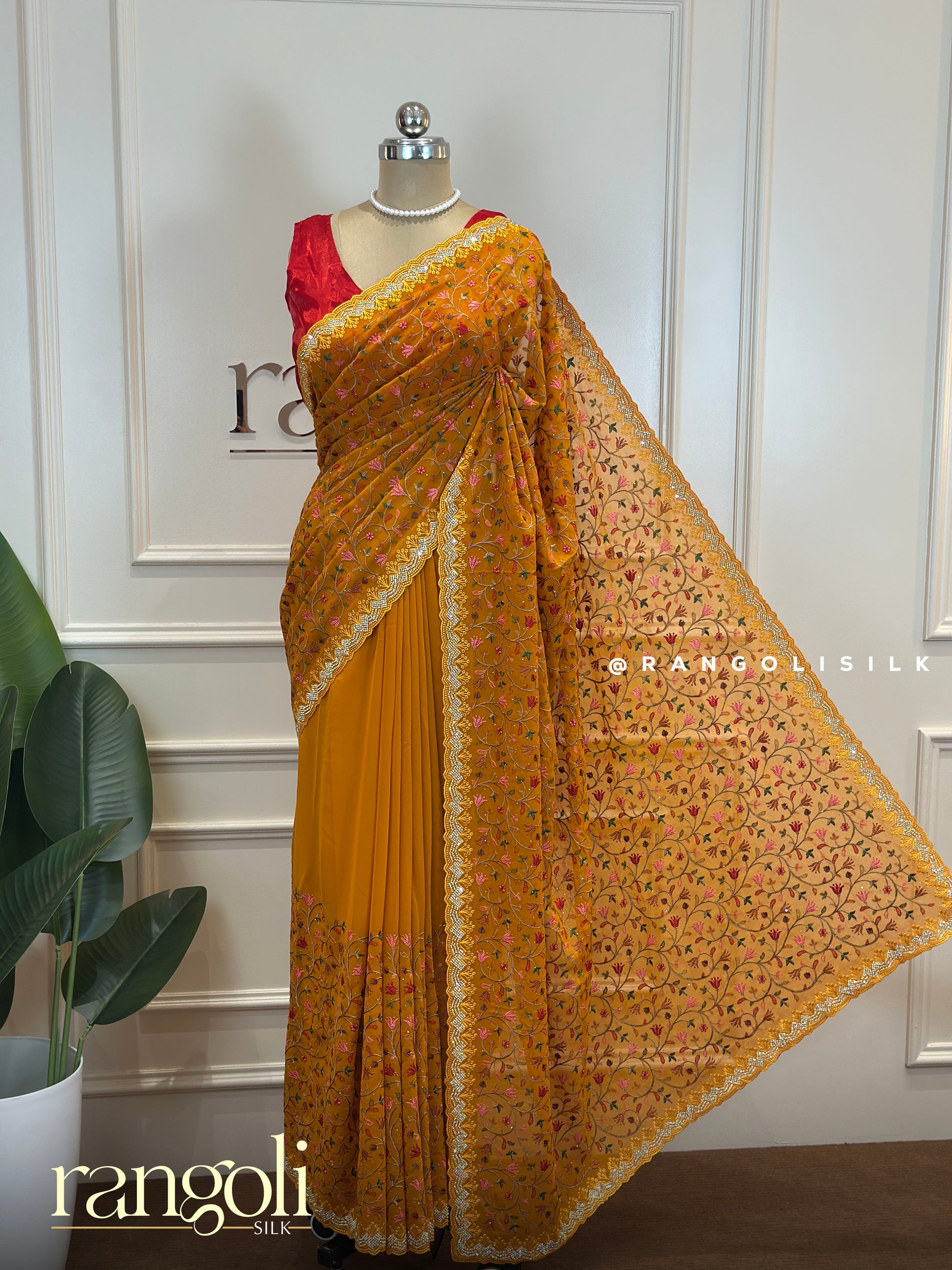 Designer Floral Embroidered Saree with Scalloped Border - Post 647