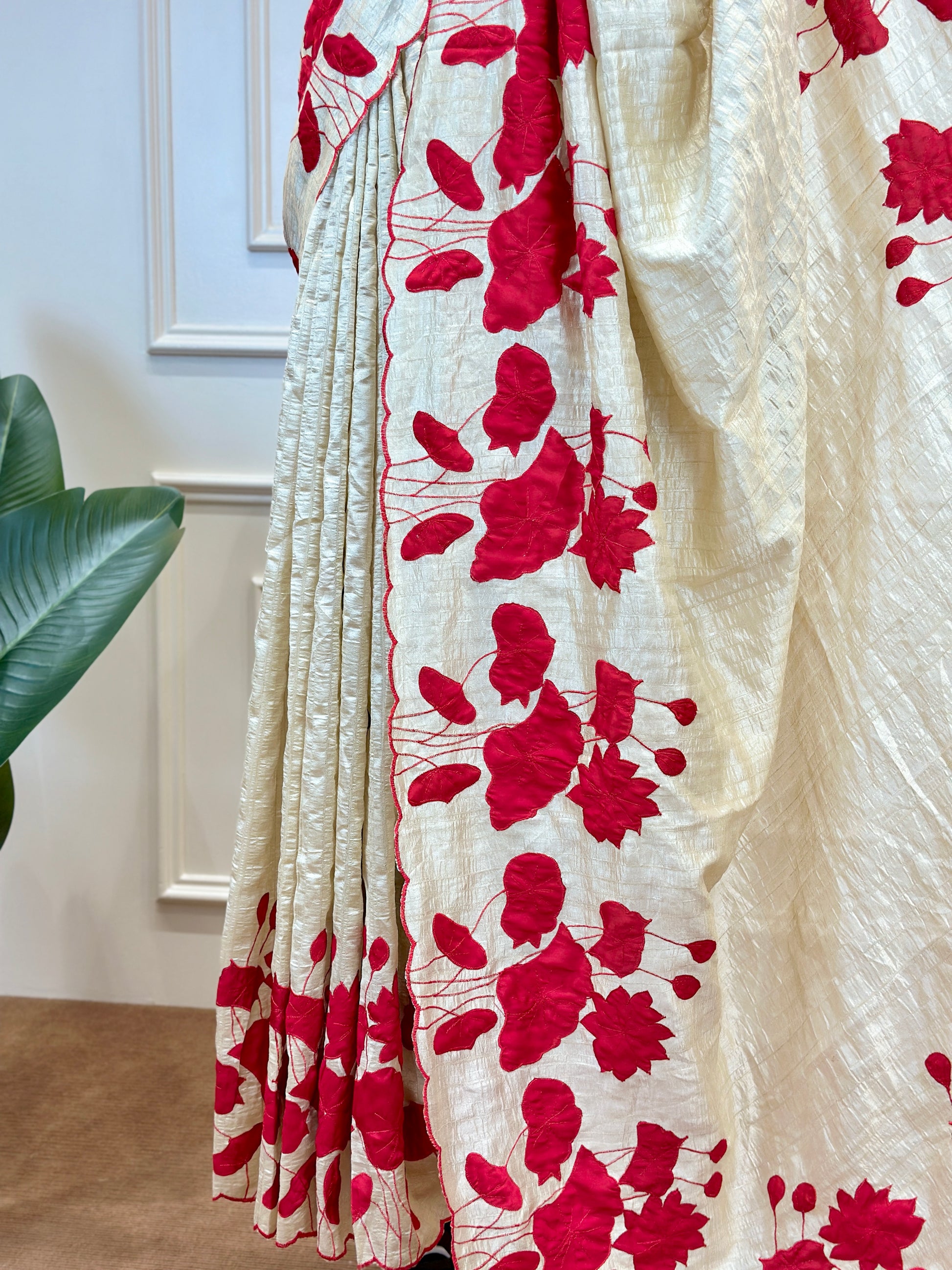 Post 779 - Elevate your ethnic wardrobe with these exquisite designer sarees crafted in premium organza material, where elegance meets contemporary charm. Featuring bold floral designs that beautifully stand out against soft, graceful bases, these sarees come in stunning colour combinations like classic ivory with black floral motifs and rich cream with vibrant red blooms. The lightweight, sheer organza fabric adds a delicate flow and luxurious finish, while the intricate detailing enhances their sophisticated appeal. Perfect for festive gatherings, celebrations, and statement occasions, these sarees blend modern style with timeless tradition effortlessly.
