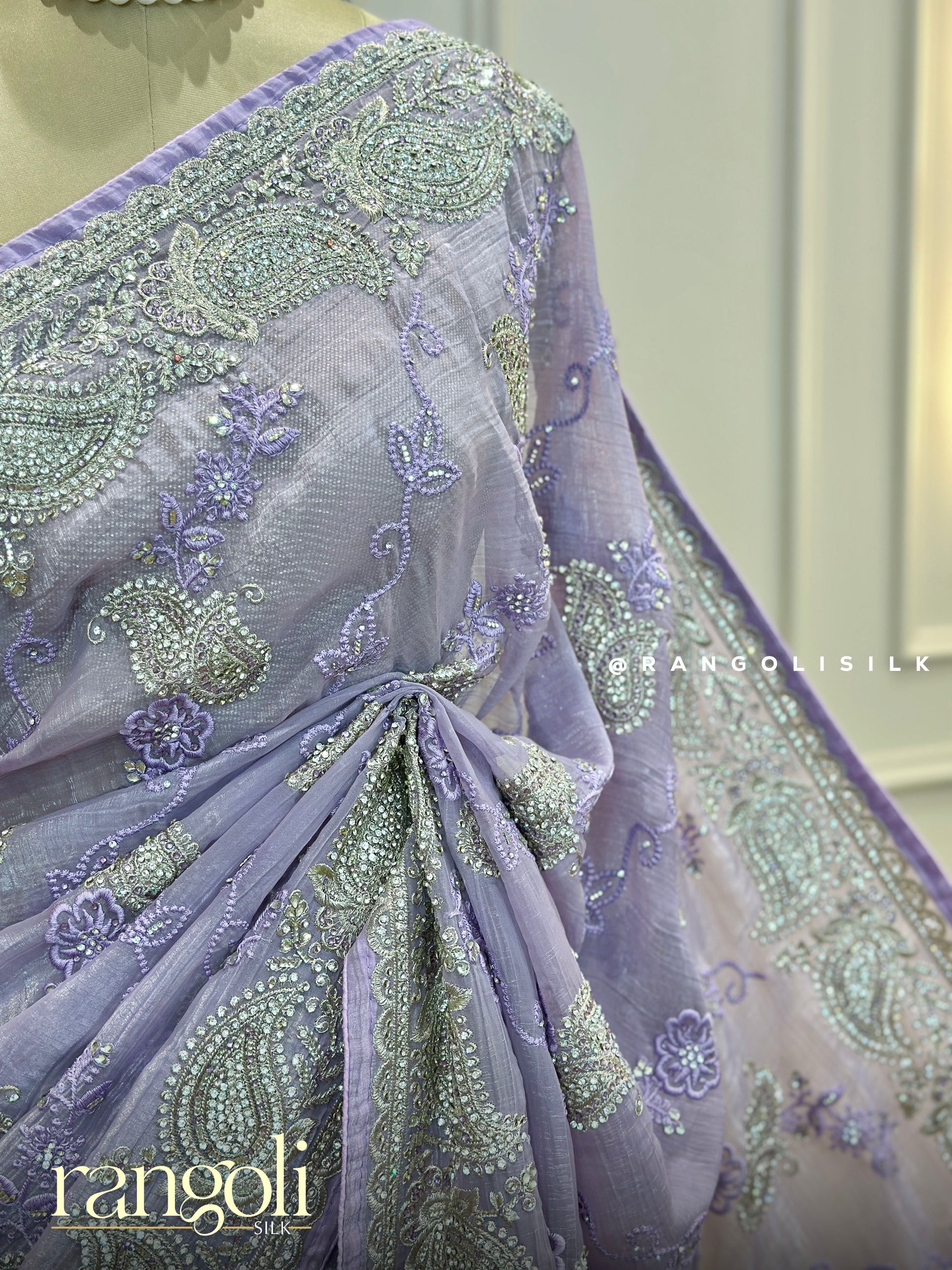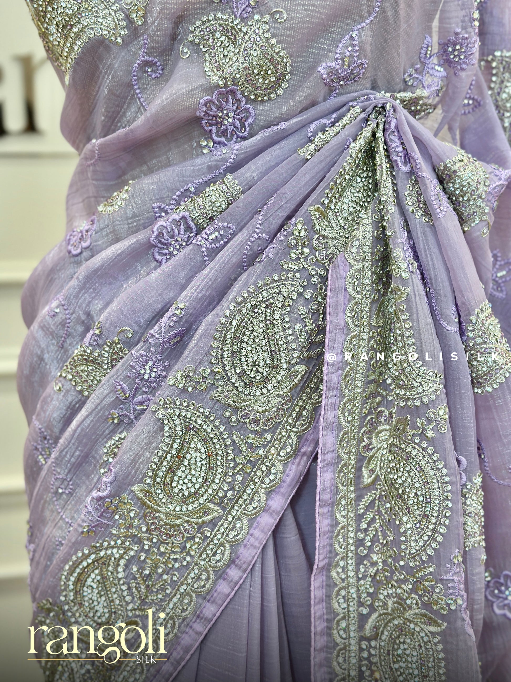 Designer Purple Saree with Intricate Rhinestone Embellishments - Post 426