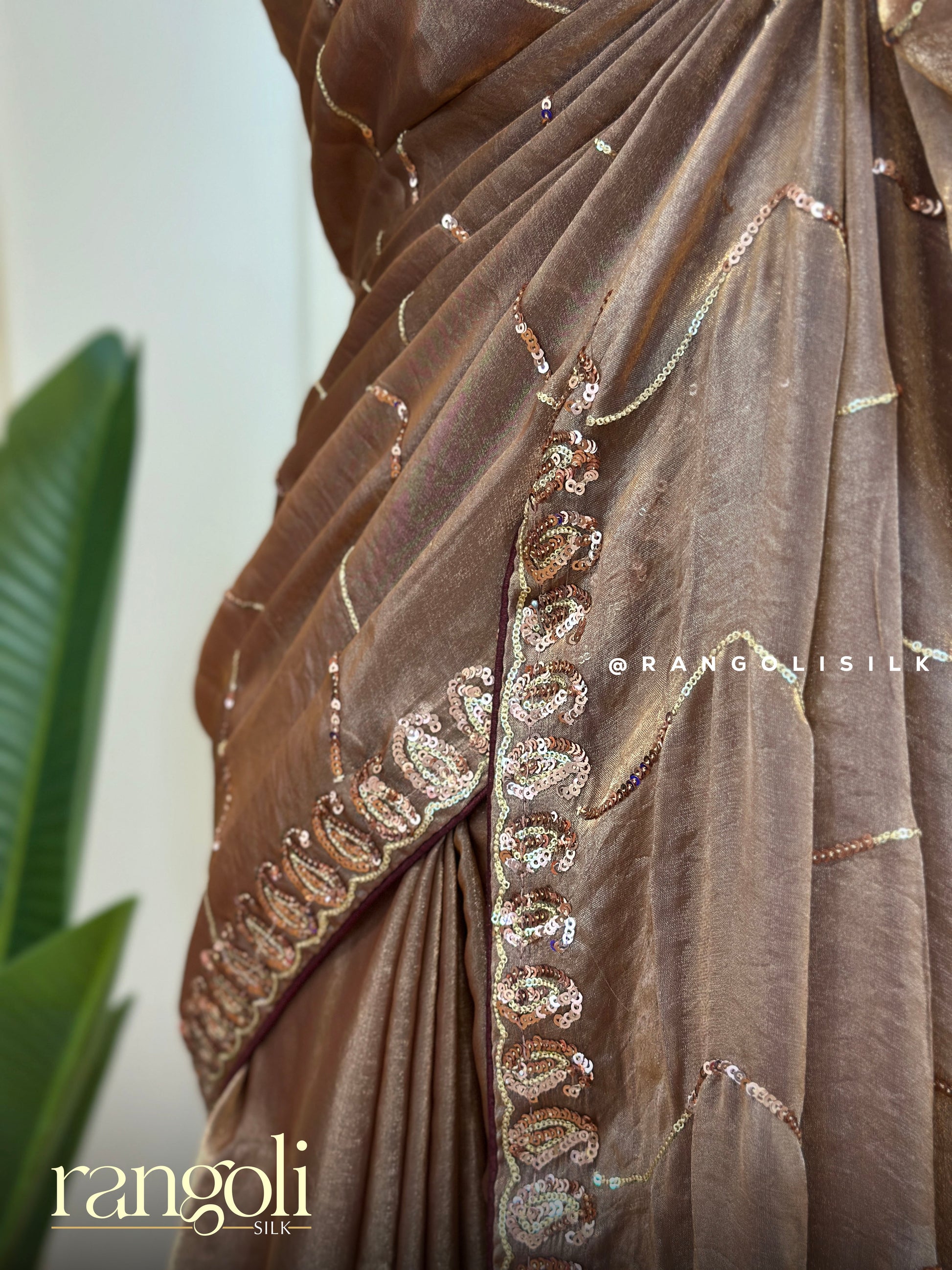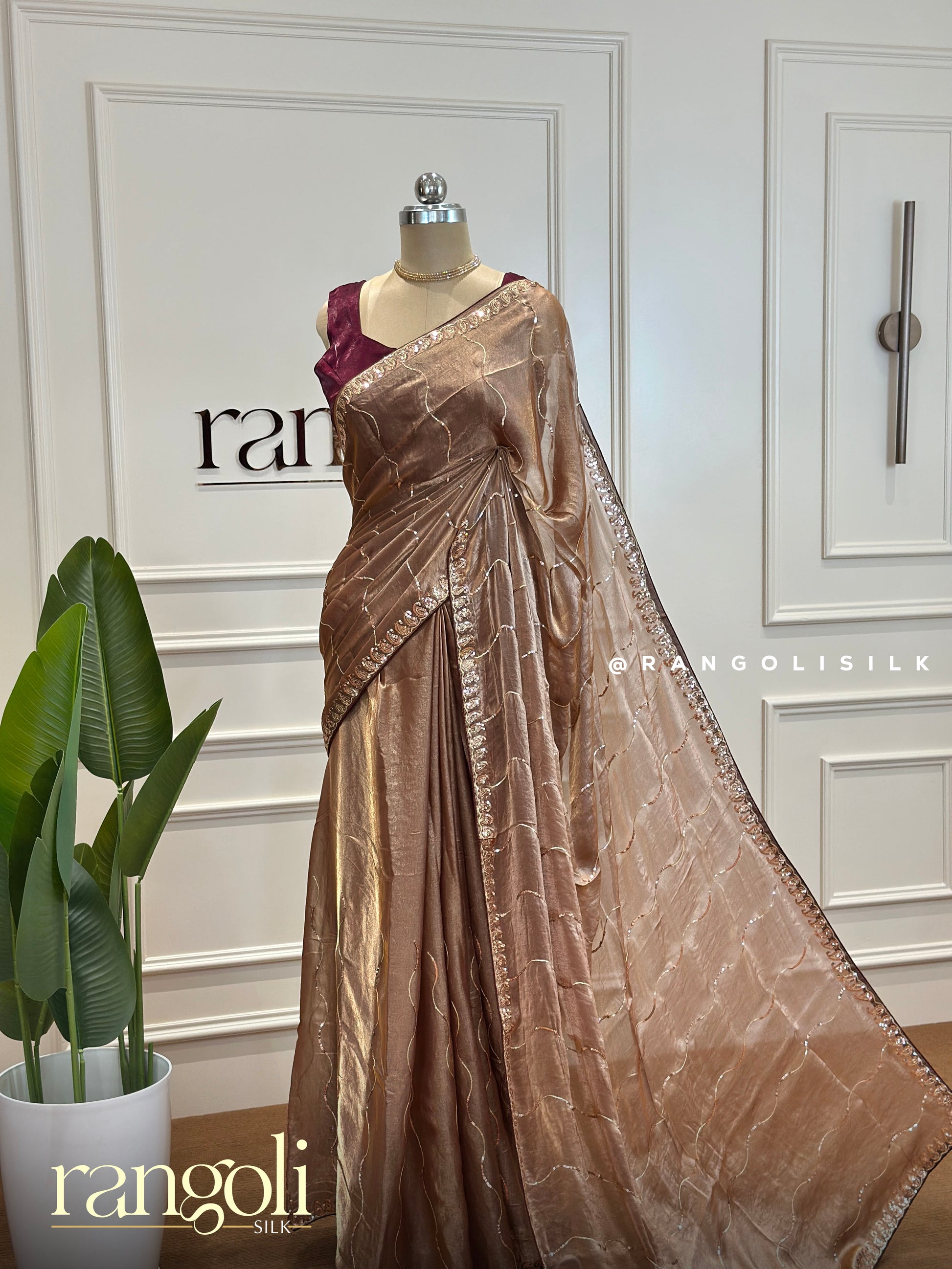 Designer Saree in Brown-Gold Hue with Subtle Shimmer - Post 444