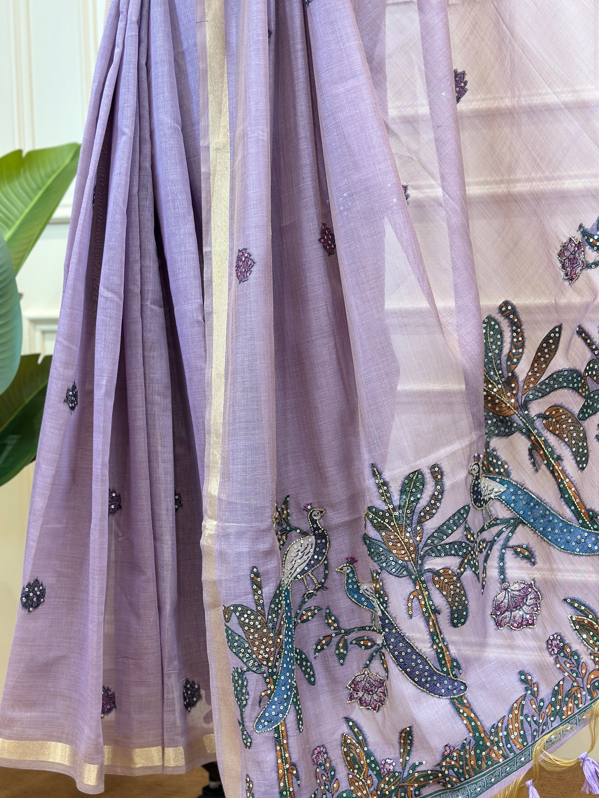 Post 775 - Grace meets comfort in these elegant soft mix cotton sarees, available in beautiful shades of mustard yellow, lavender purple, and dusty rose pink. Designed with delicate scattered buti motifs and a richly detailed embroidered border featuring floral and nature inspired patterns, each saree blends tradition with subtle sophistication. The lightweight, breathable soft mix cotton fabric drapes effortlessly, making it perfect for all-day wear while keeping you stylish and comfortable for any occasion!
