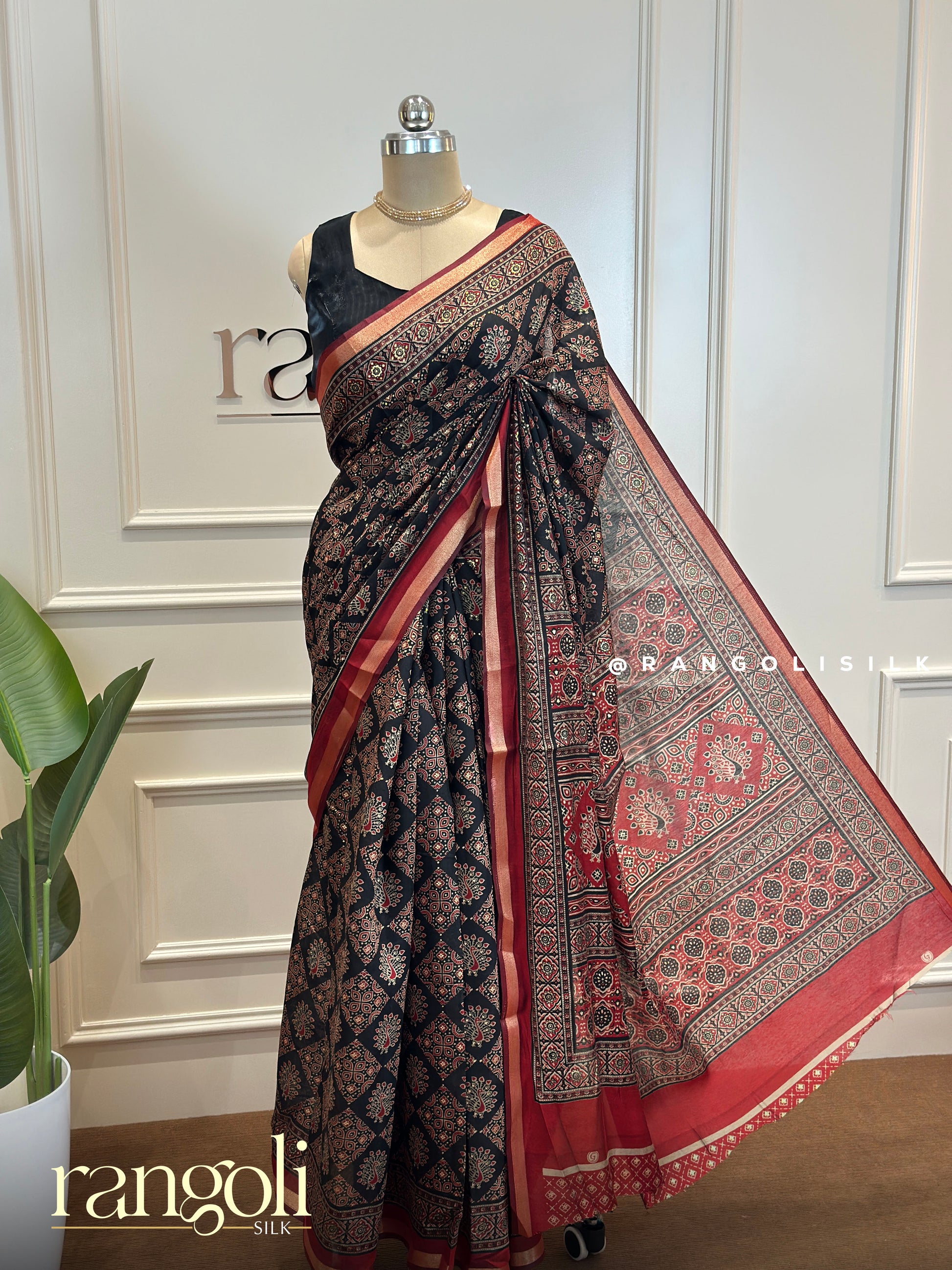 Post 673 - This elegant cotton saree reflects timeless traditional charm with a beautifully detailed design. Made from breathable cotton, it offers comfort and an easy, graceful drape. The saree comes in rich colours. Its striking contrast border adds depth and visual appeal.