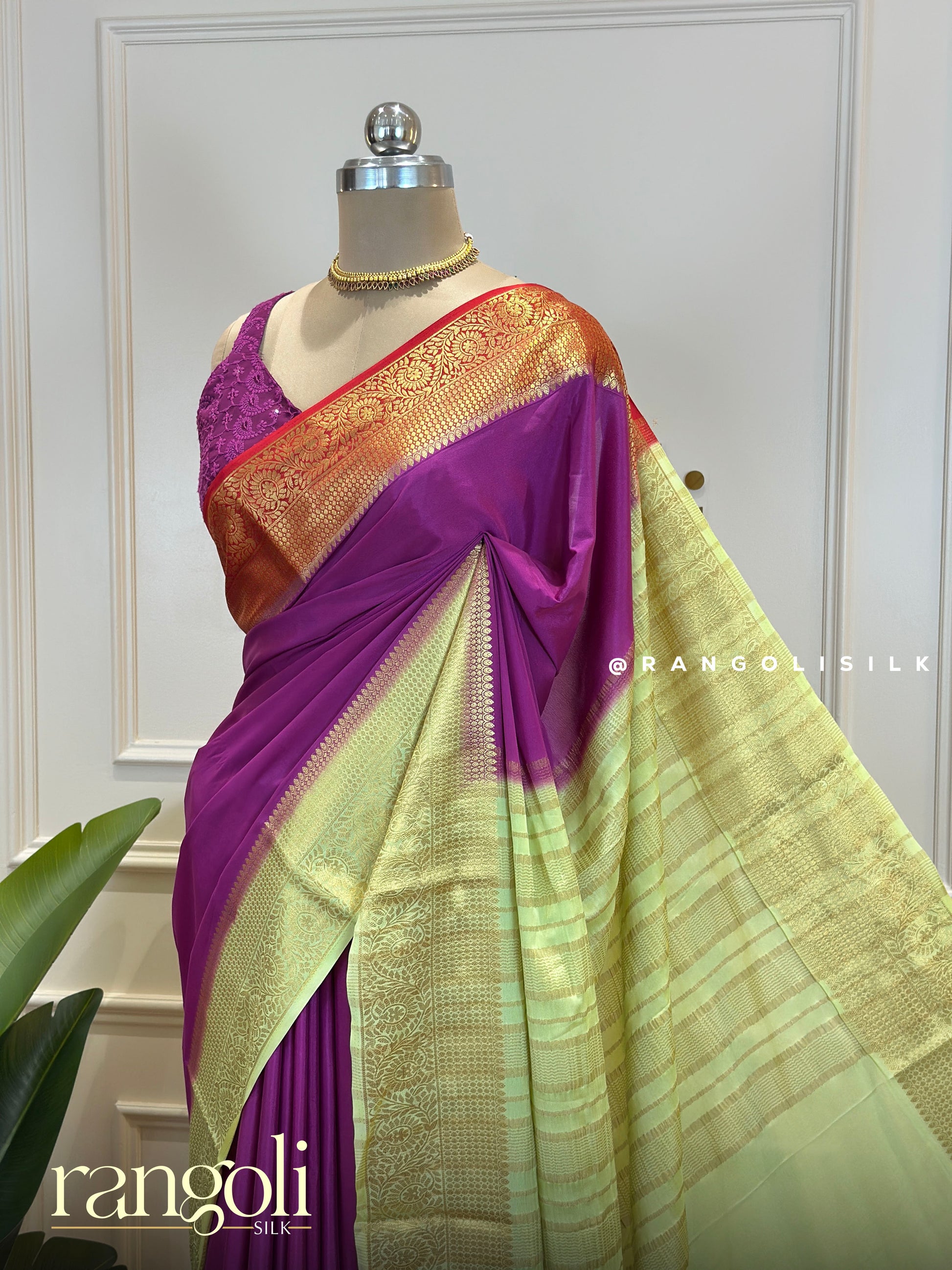 We bring you an authentic collection of Pure Mysore Silk sarees, crafted...