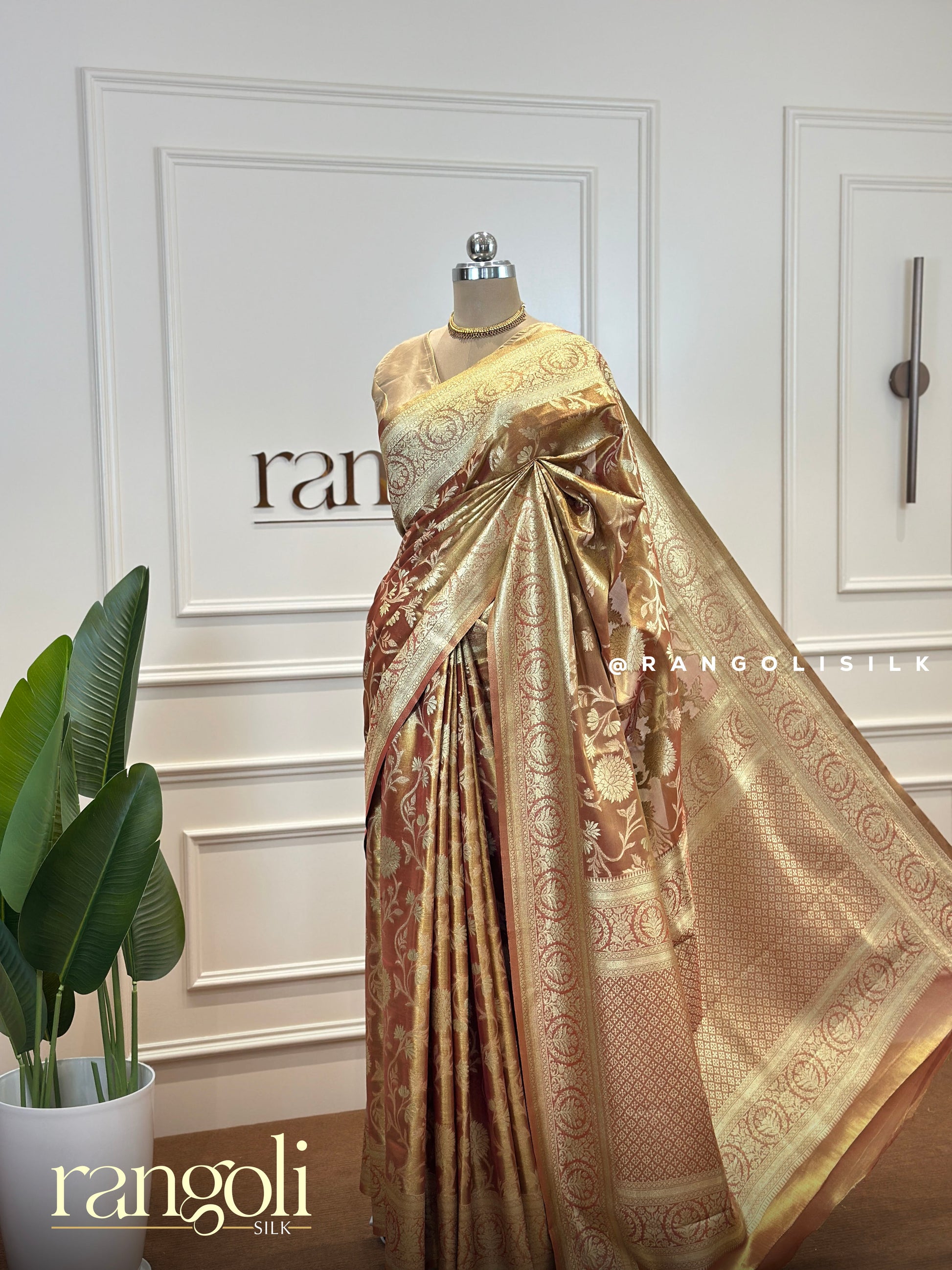 Goldish Brown Tissue Silk Saree with Rich Floral Detailing - Post 416