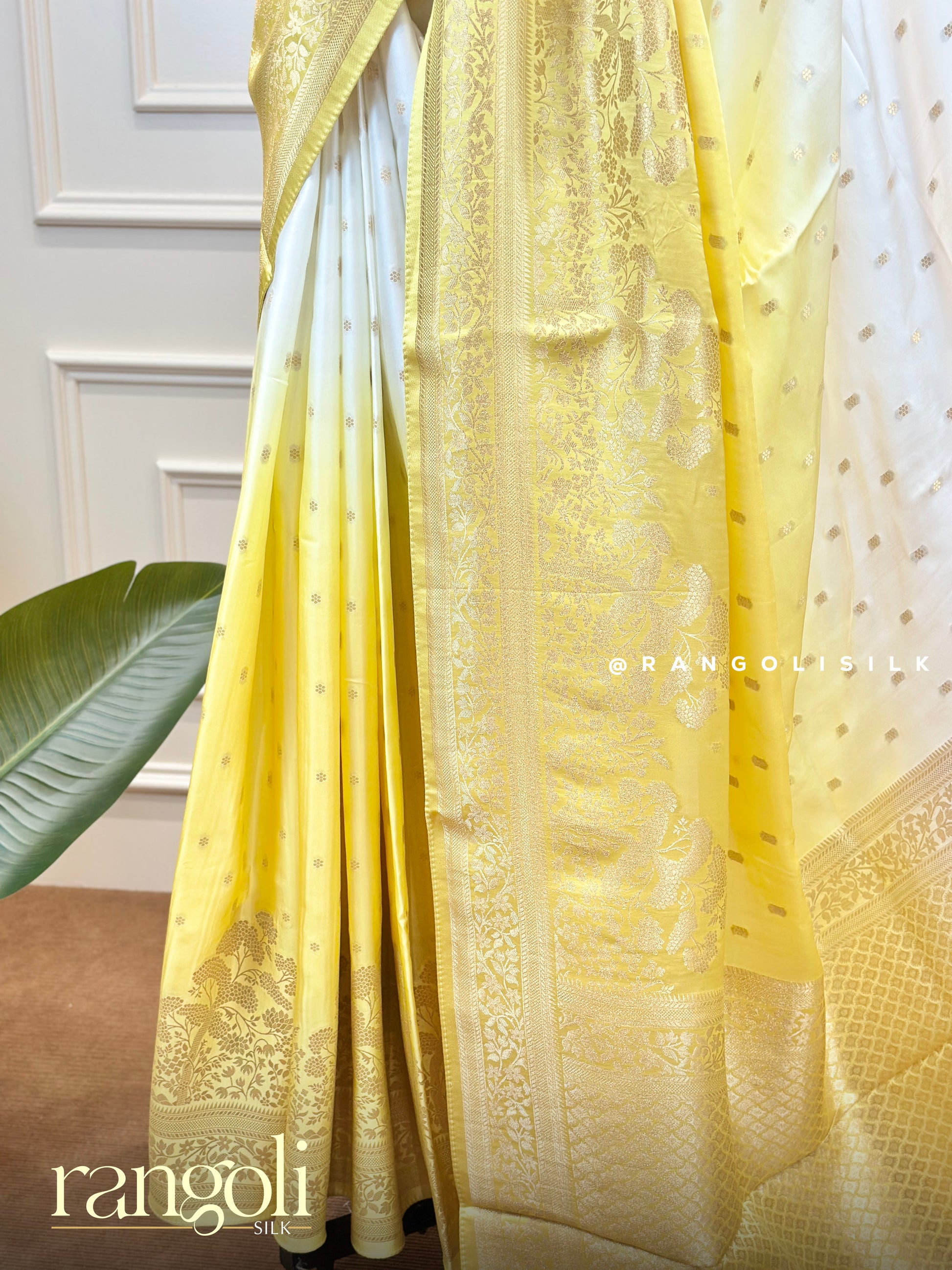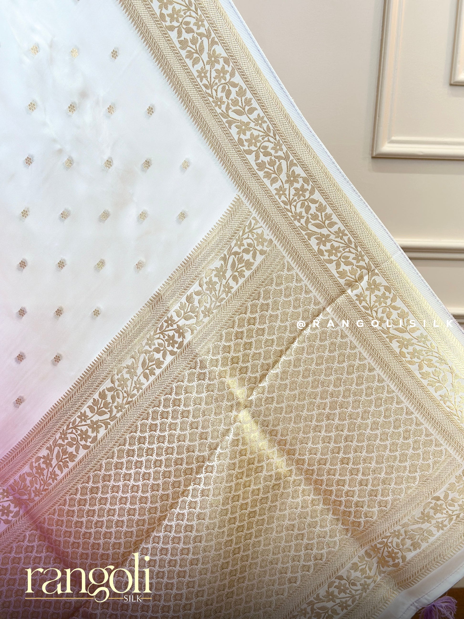 Ivory Double Shade Banarasi Saree with Yellow & Lilac Zari Motifs - Post 716