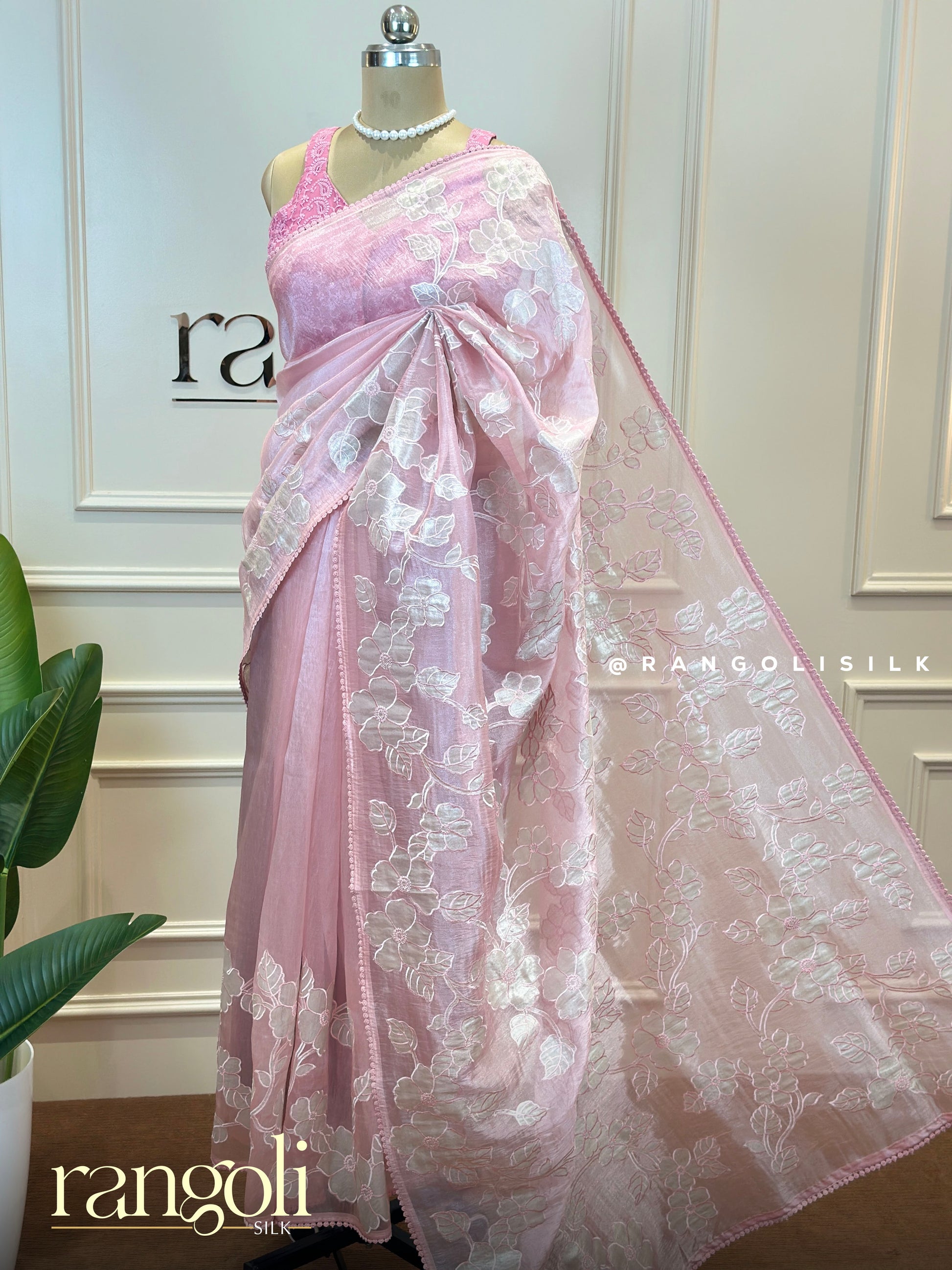 Post 708 - Grace meets elegance in this designer saree crafted to make a timeless statement. Draped in a soft pastel pink hue, this saree radiates subtle luxury and feminine charm. Delicate floral embroidery spreads beautifully across the fabric, adding depth and artistry. The sheer texture enhances its lightweight flow, perfect for refined occasions. Intricate patterns paired with a modern silhouette create a flawless balance of tradition and style .