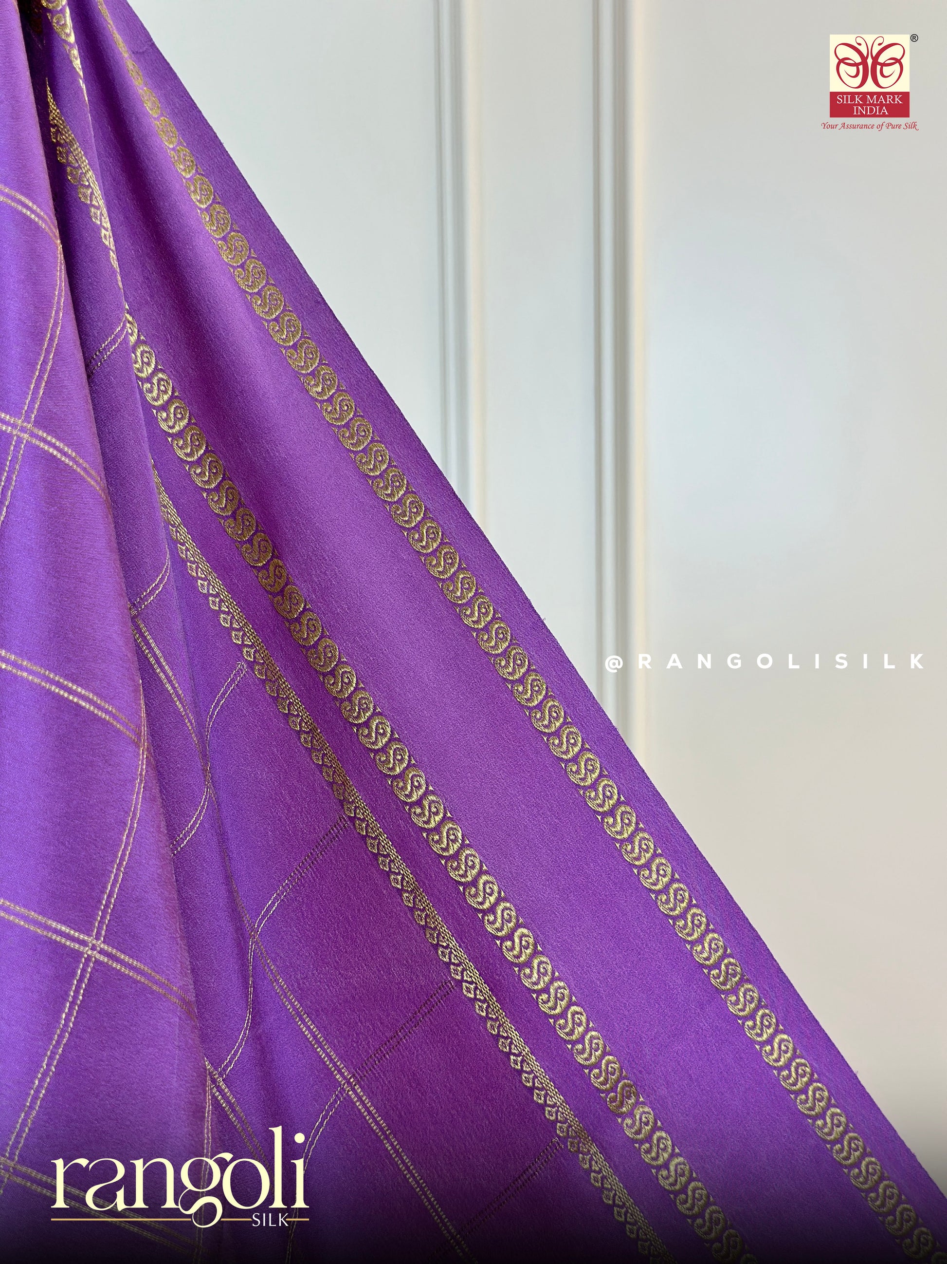 Pure Crepe Silk Saree in Royal Purple with Zari Checks - Post 454