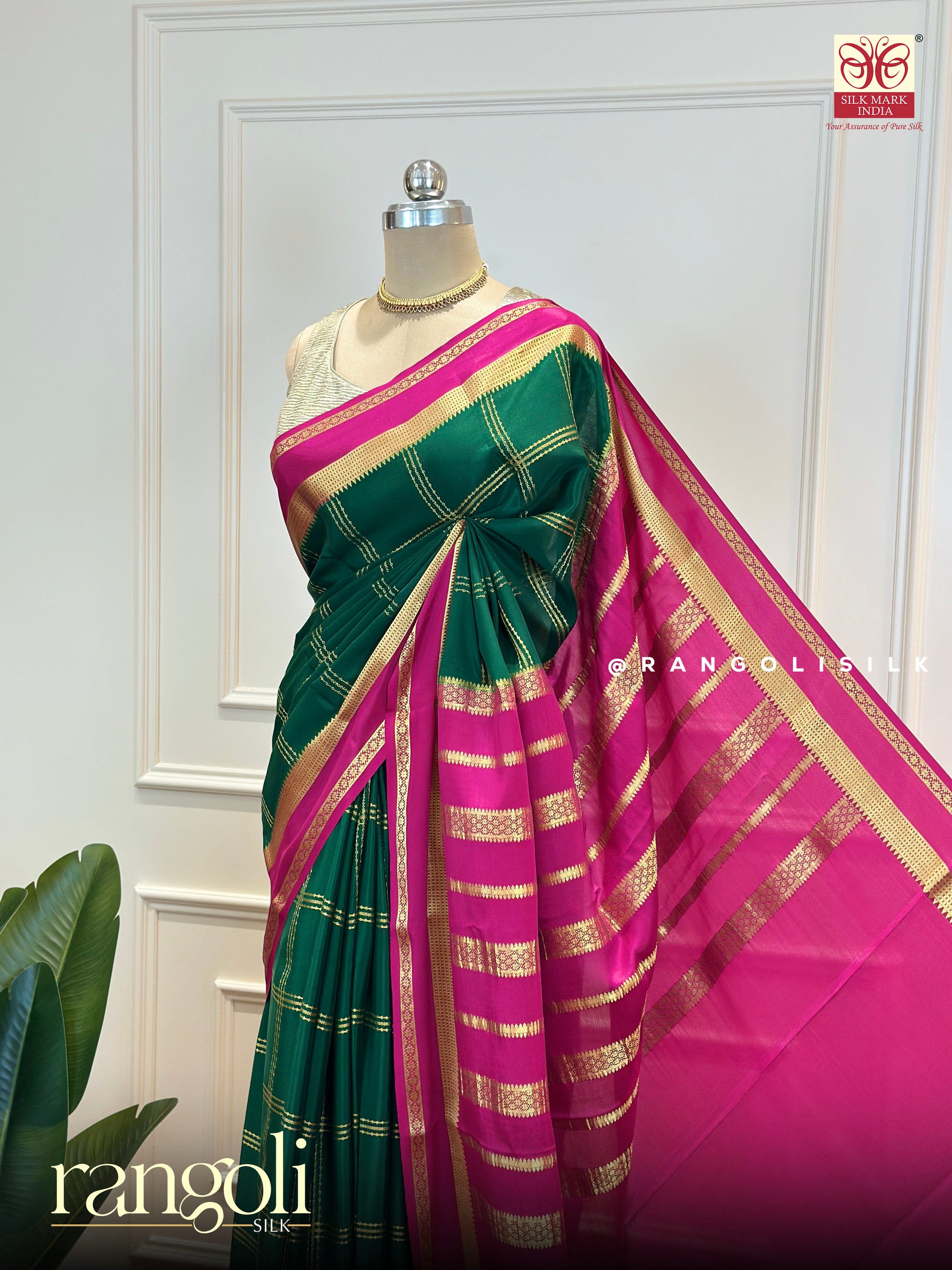 Pure Mysore Silk Saree with Classic Checks & Bentex Border - Post 693