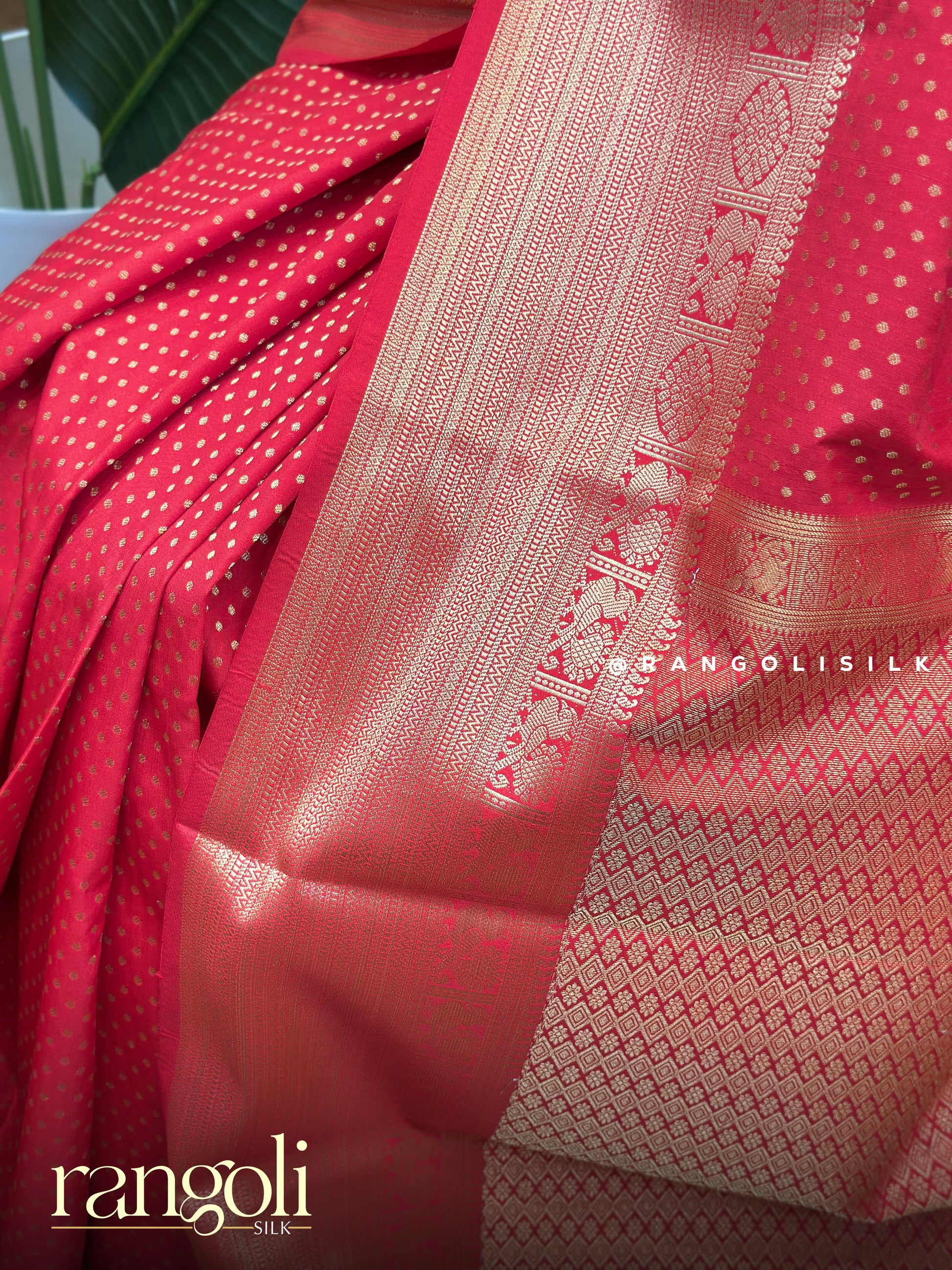 Red Semi Kanjivaram Silk Saree with Zari Border - Post 740