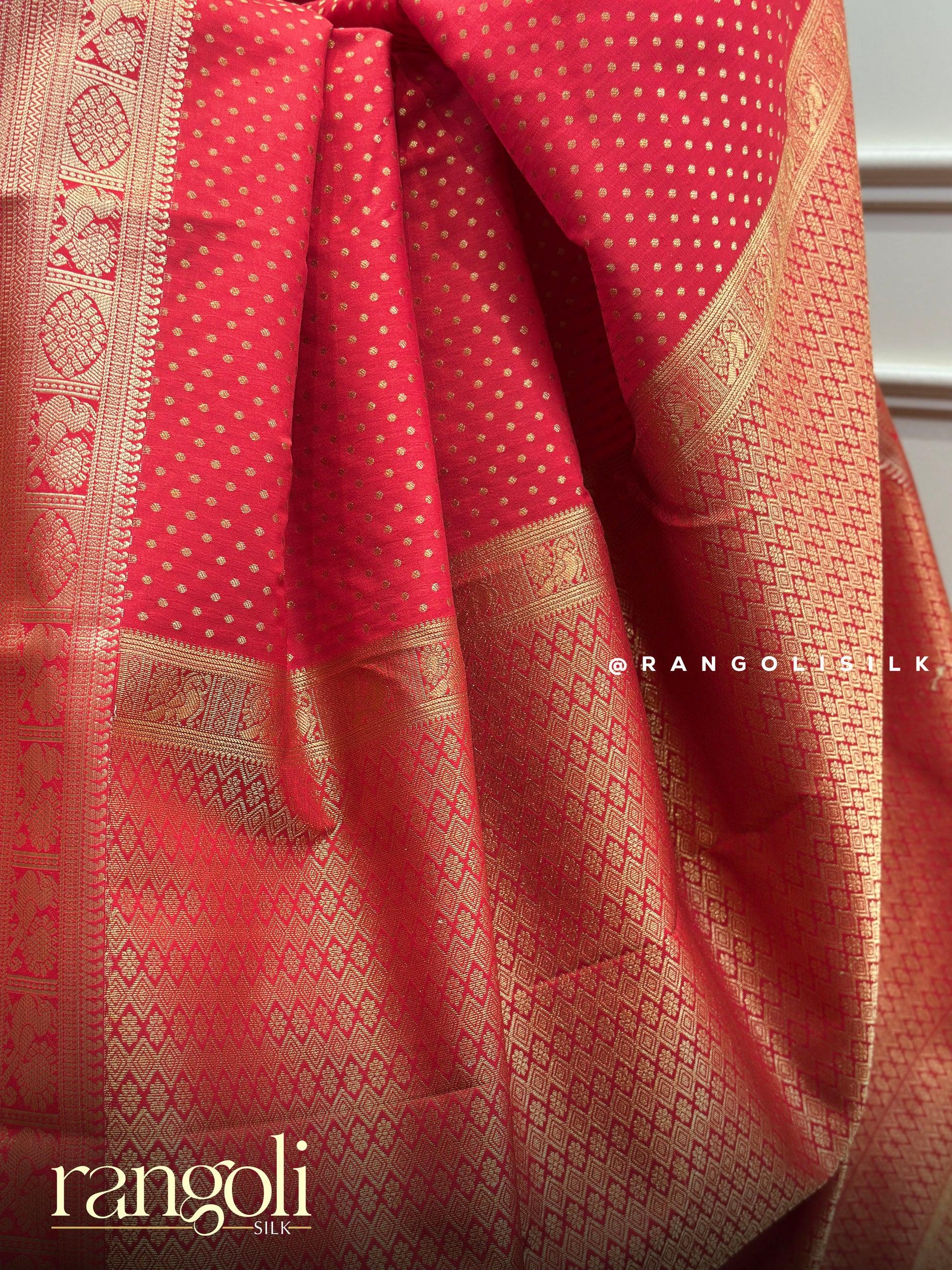Post 740 - Draped in timeless elegance, these red Semi Kanjivaram silk sarees celebrate classic South Indian craftsmanship with a modern touch - rich silk texture, delicate zari borders, and graceful motifs coming together in a vibrant red that speaks of tradition, festivity, and effortless sophistication. Perfect for weddings, celebrations, and moments that call for understated luxury.