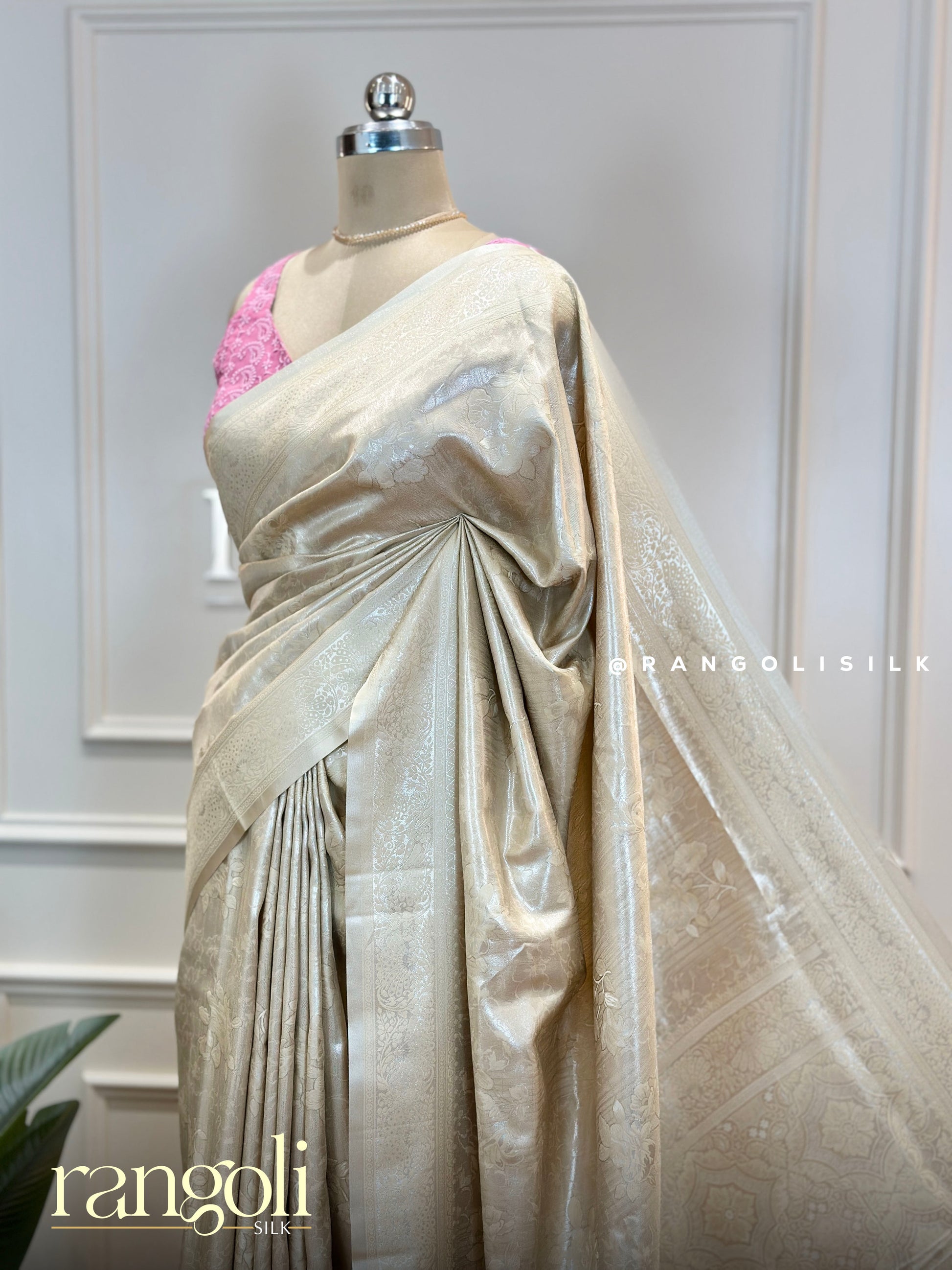 Post 585 - A timeless collection of Banarasi silk sarees - where luxury meets tradition. Crafted in serene pastel tones with intricate zari work, these drapes bring an understated grandeur perfect for festive and wedding seasons.